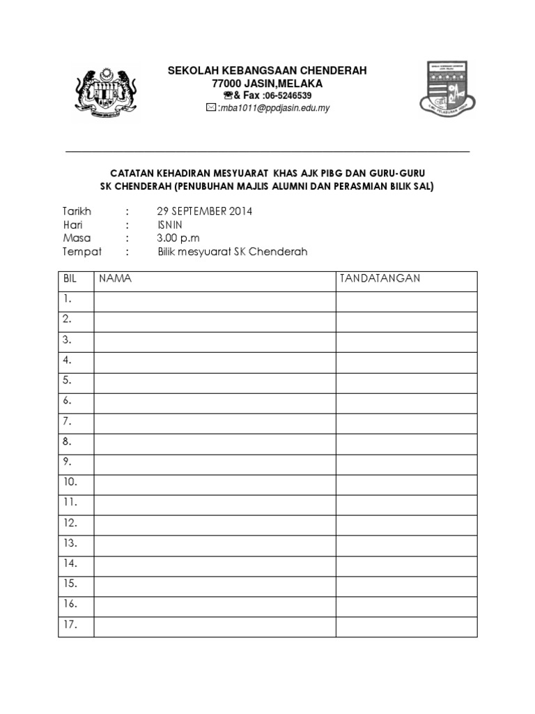 Borang Kehadiran Mesyuarat Spsk Nigelctzx