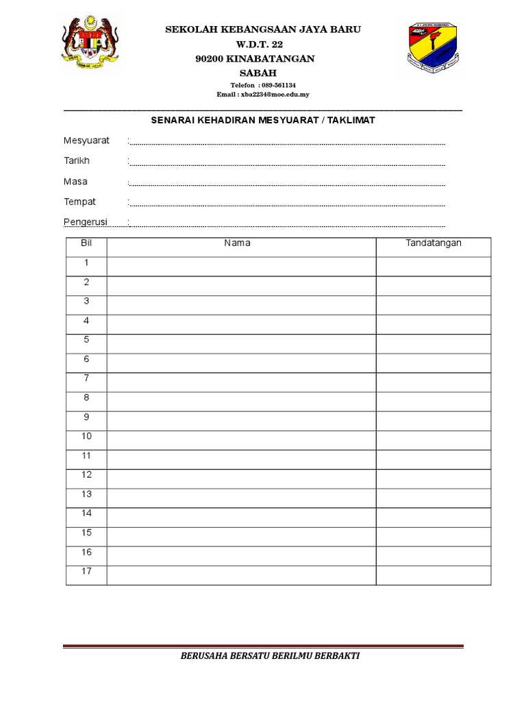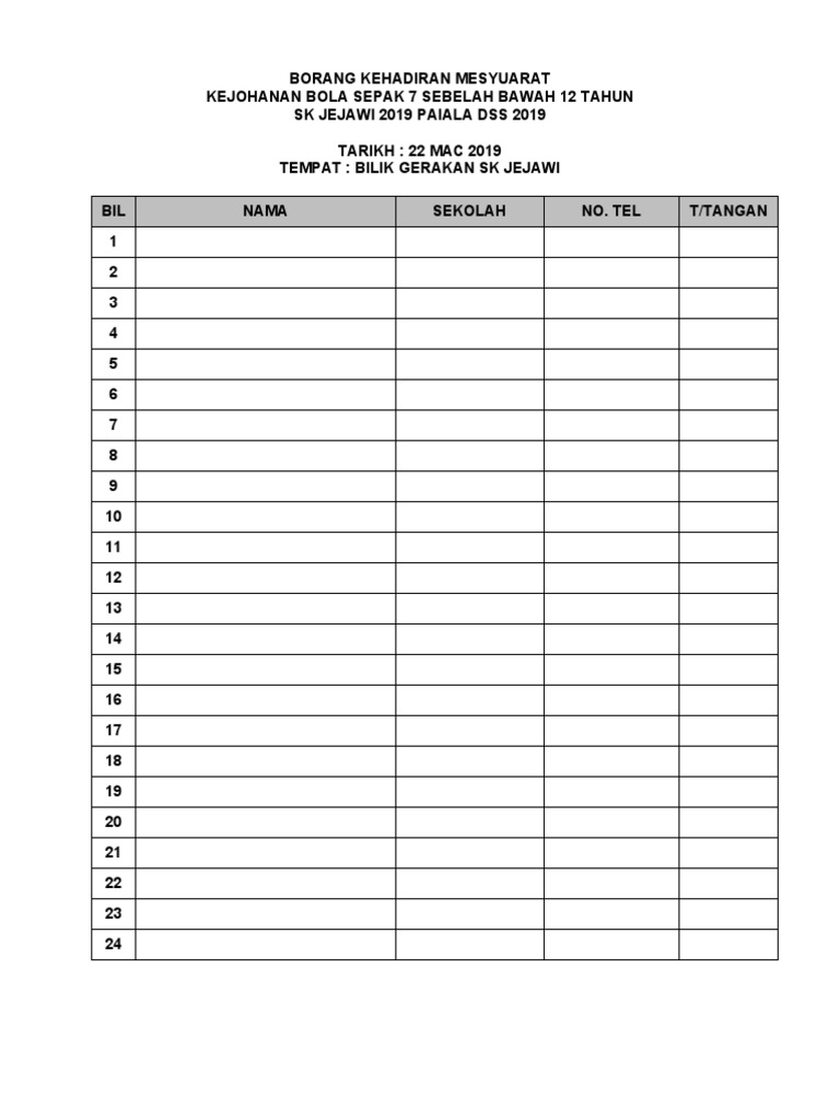 Borang Kehadiran Mesyuarat Pdf